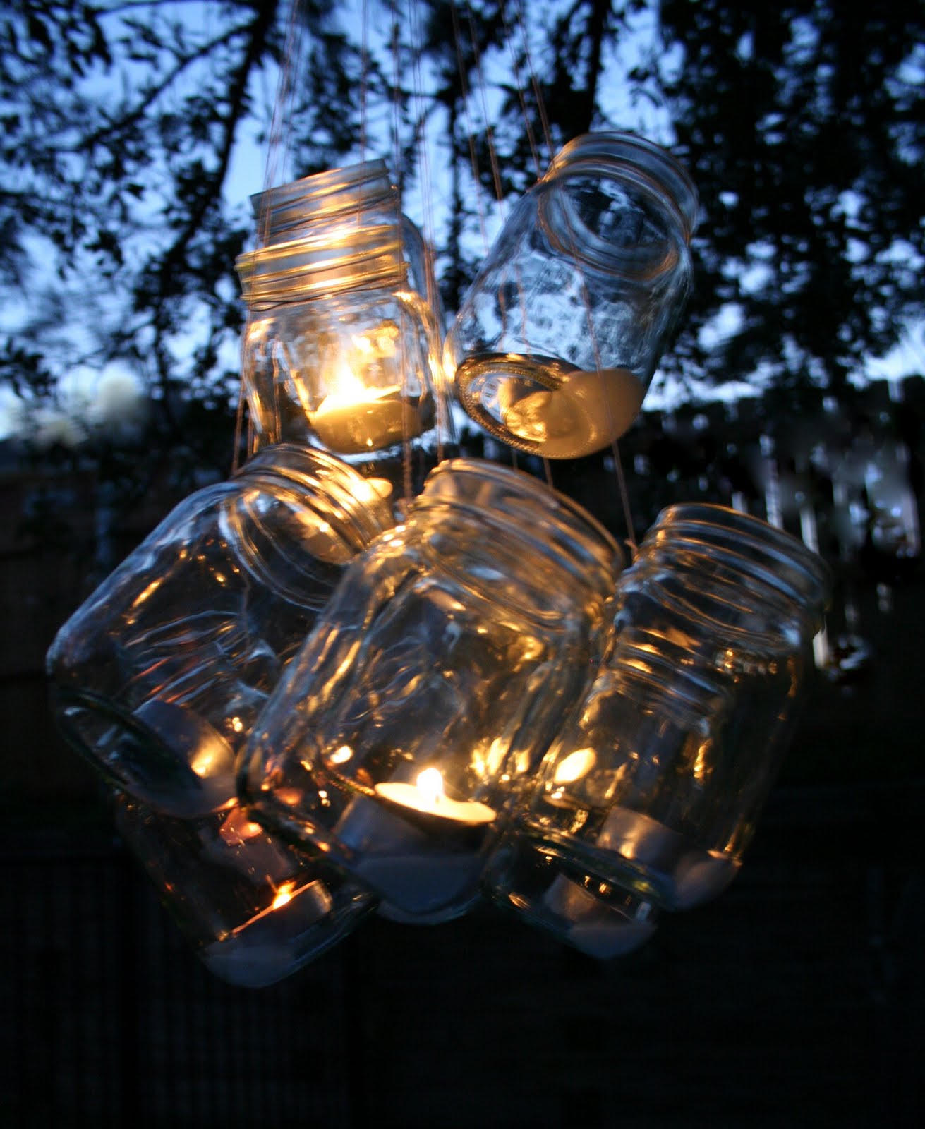 What a romantic way to commemorate a special day! I love the Mason jar candlelier!