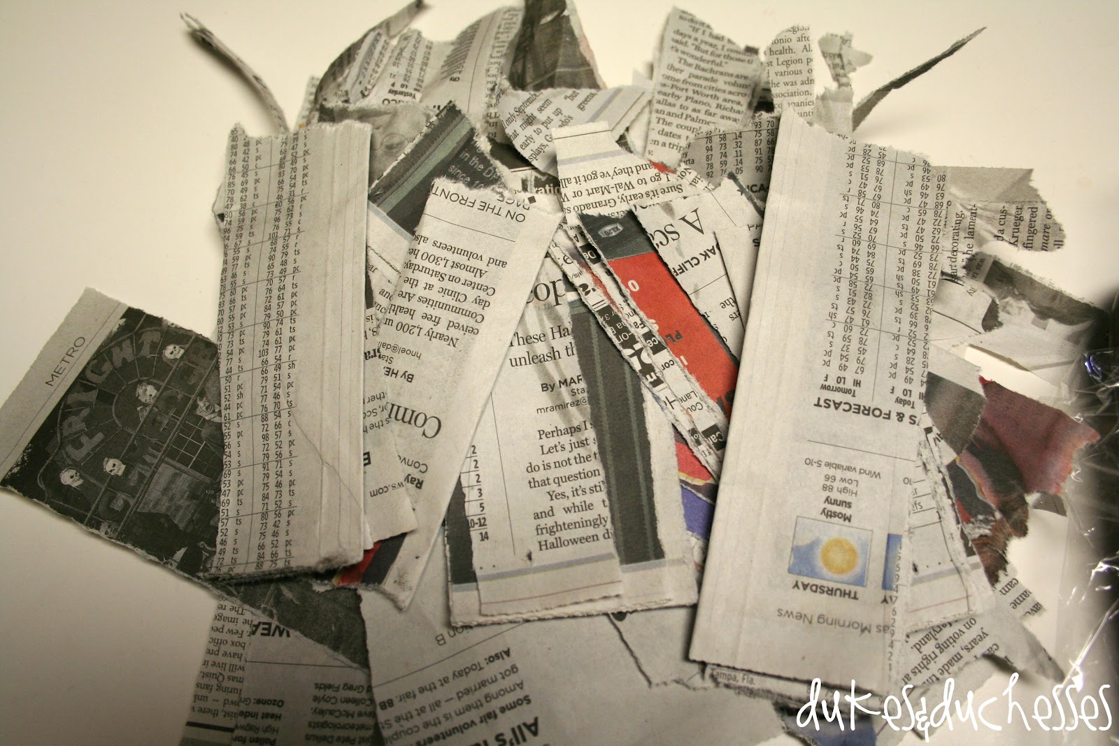 Rip the newspaper into strips …