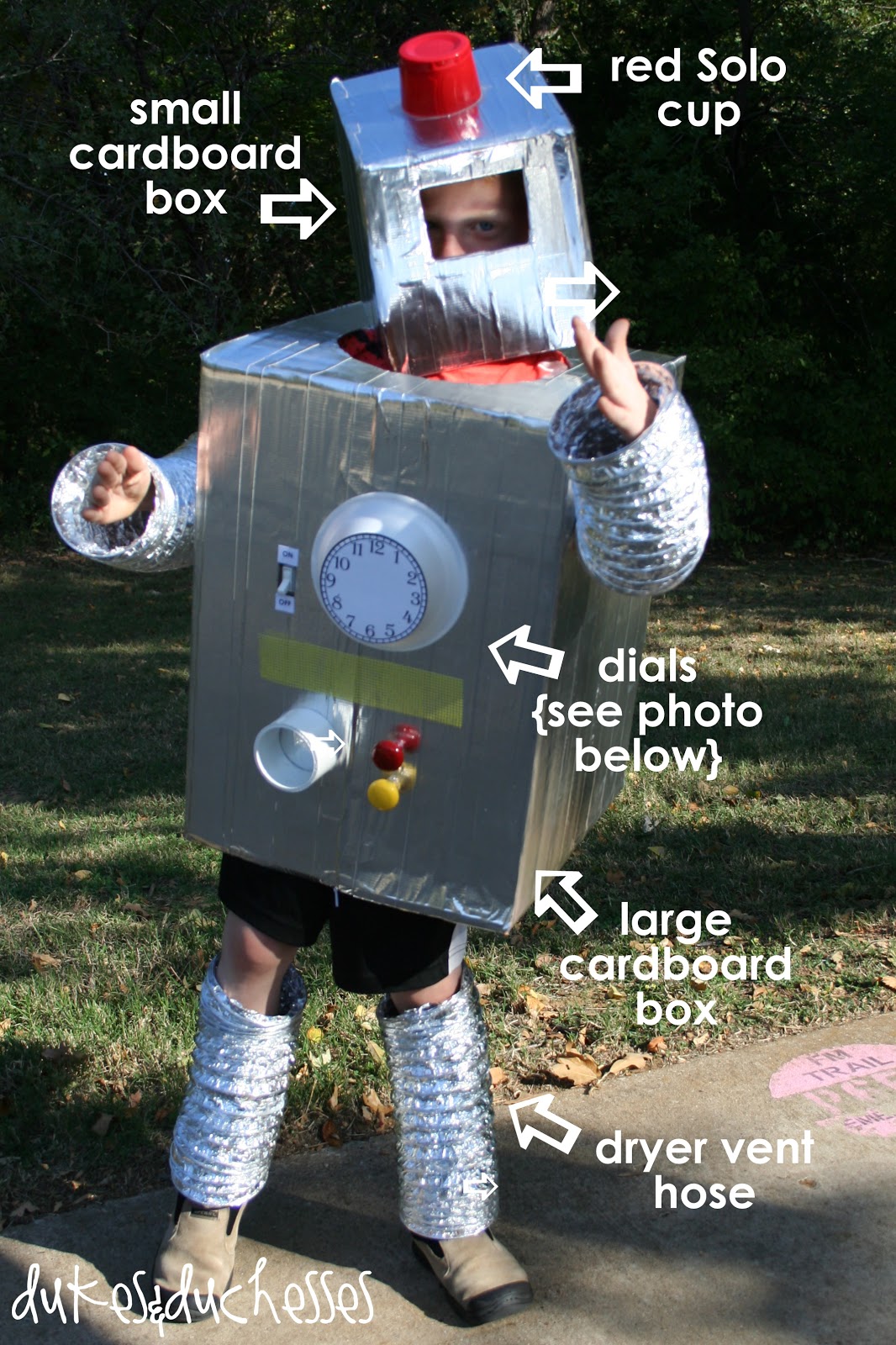 What a cool costume! Love that it’s from items you’d have around home. The bowl for the dial is a great idea.