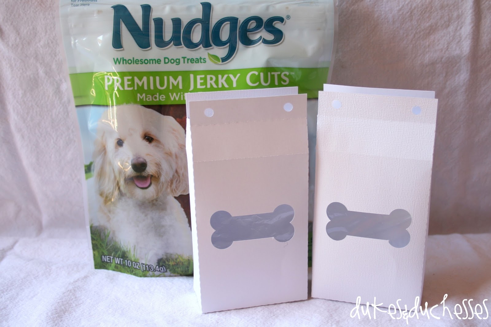 I wanted to make something cute for the party but I also wanted to give Molly and her puppy friend a healthy, wholesome treat. Nudges, dog treats made in the USA, fit the bill. Molly loves the way they taste {and apparently the way they smell since she went crazy as soon as I opened the bag} and I’m happy that they’re not loaded with fillers and artificial flavors. They were the perfect treat for a doggy bag for the party!