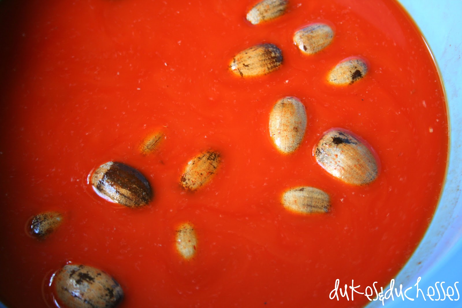 The other day, Tate and I gathered a pile of fallen acorns and caps {they often separate once on the ground or maybe as they fall} and I dyed them orange using Rit dye.