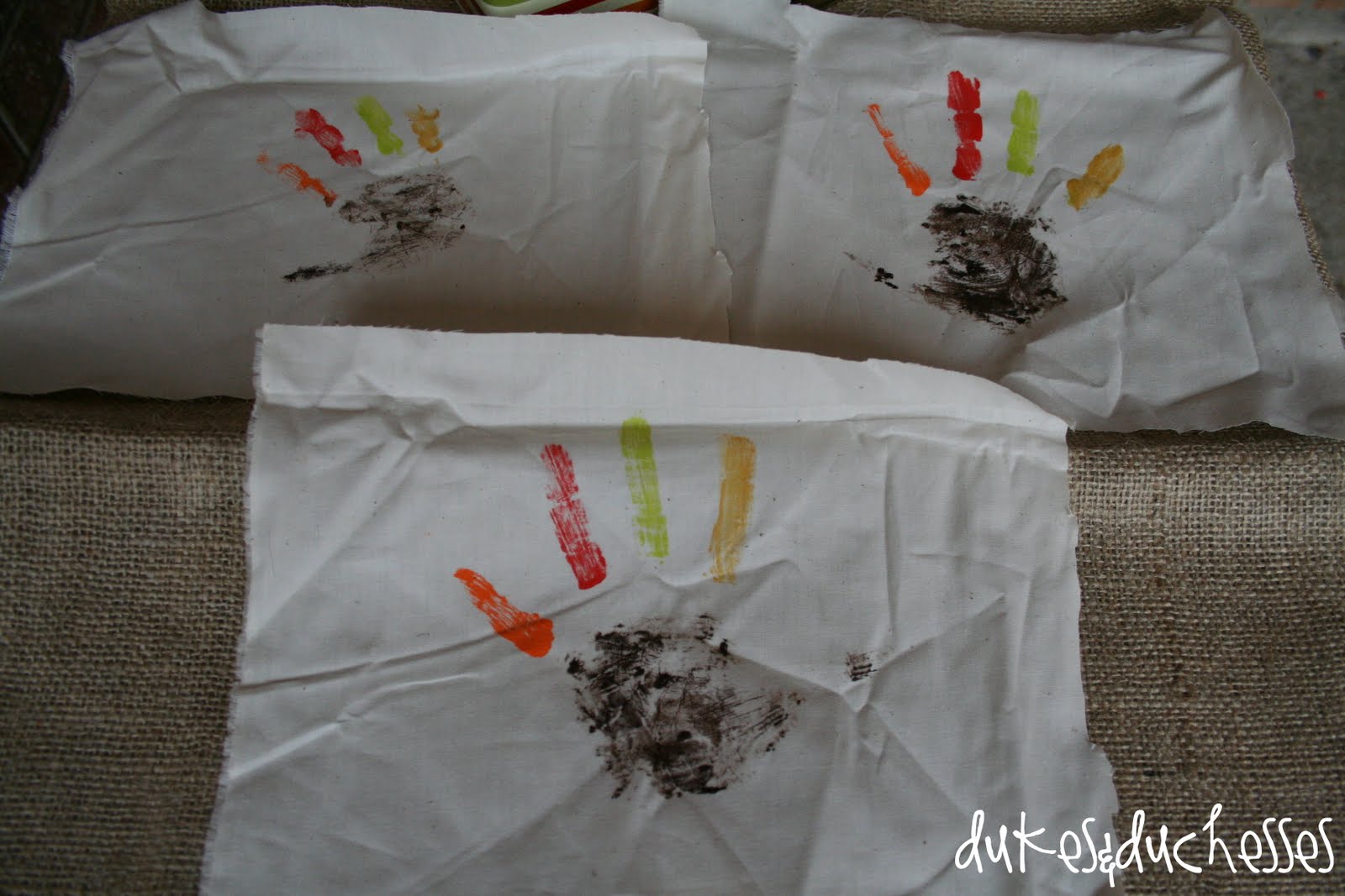 … and stamped them on muslin. They’ll be embellished to look like little turkeys. Check back tomorrow to see what I end up doing with them.
