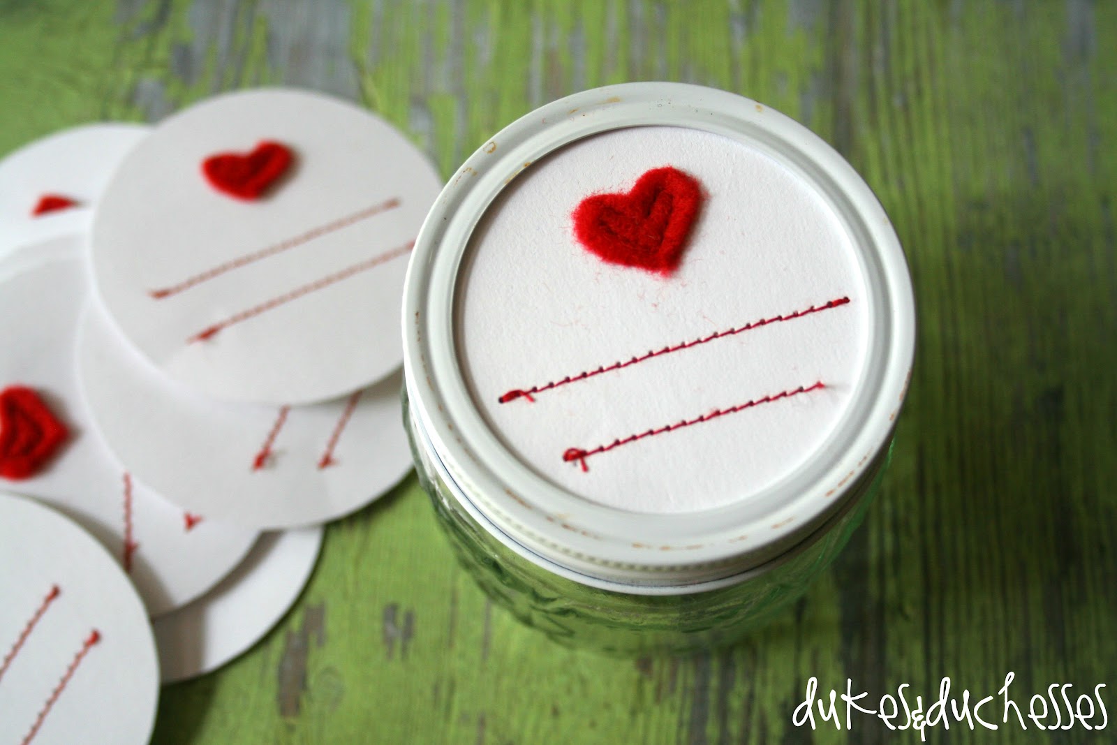 I have a friend who is a creative, gardening, canning type of girl. She lives in the Okanagan Valley, grows a beautiful garden, picks fruit from the trees, and often cans a pantry full of goodies. When I saw these adorable stitched mason jar labels, I thought it would make a fun homemade gift for her birthday.