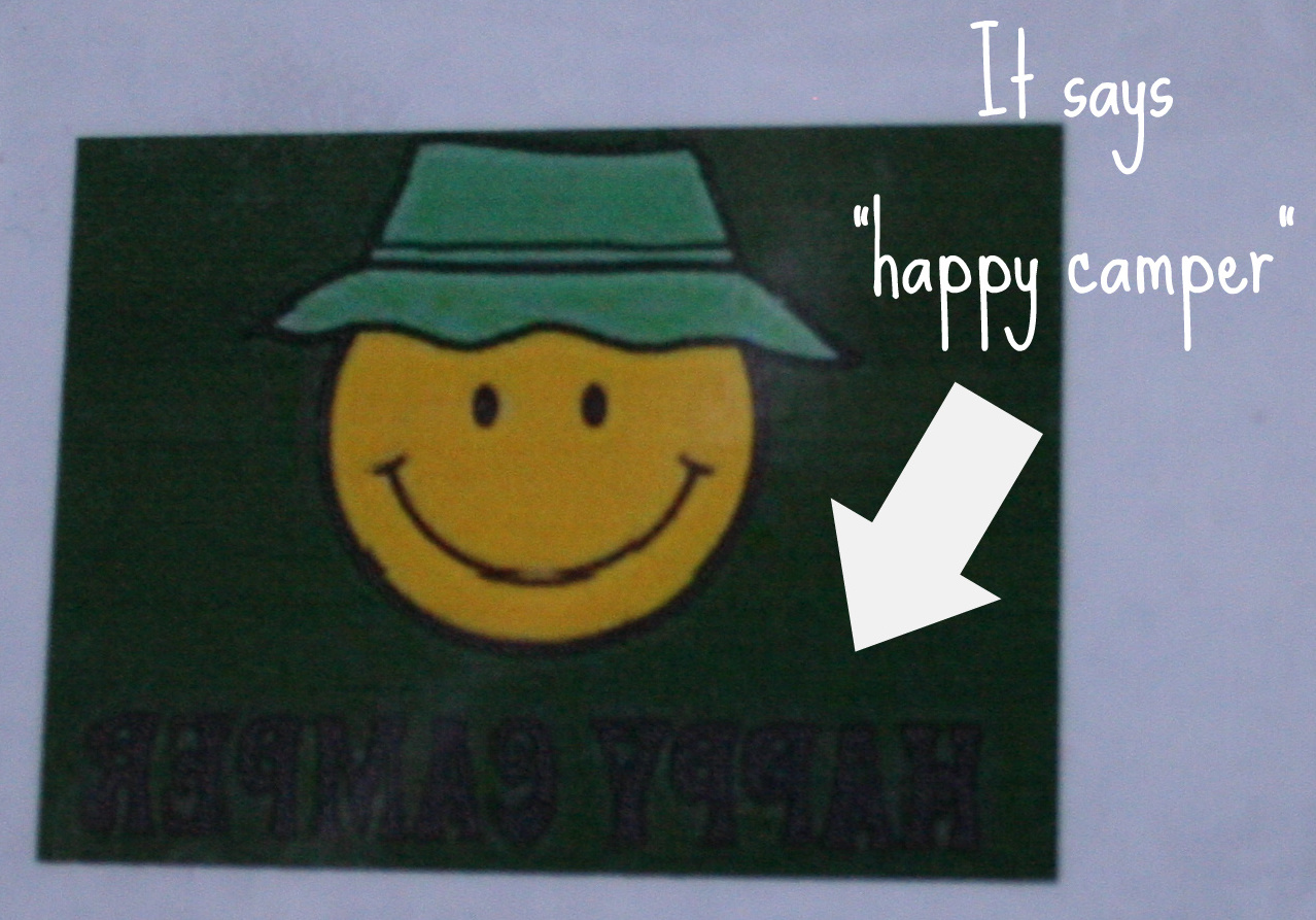 Luke and Lila have an upcoming camp-themed birthday party and I thought it would be fun to make some little themed tattoos. I found a Happy Camper image online {I saw this image used in many, many places and it didn’t appear to have a copyright so I hope I’m not violating any laws … and if I am, I only made ten and I’m not selling them so please forgive me} and copied it into Word. I then reversed the image so the text won’t be backwards once the tattoo is in place and printed it onto the tattoo paper.