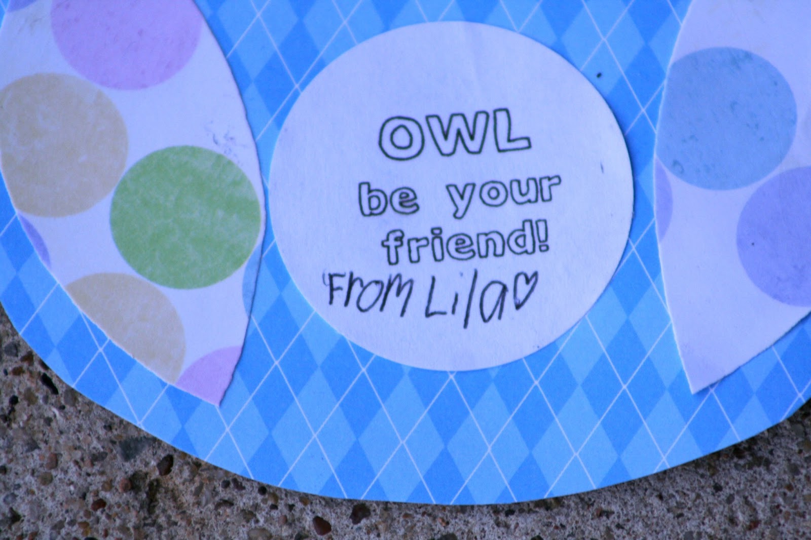 … and printed “OWL be your friend” on regular computer paper then punched it out with a circle punch.