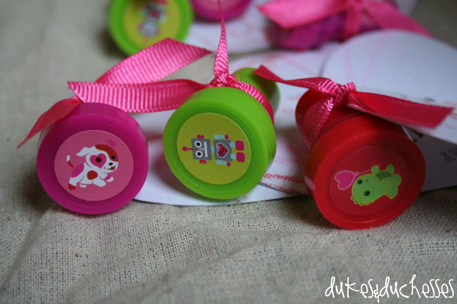 We bought cute and inexpensive rubber stamps in the valentine section at Walmart …