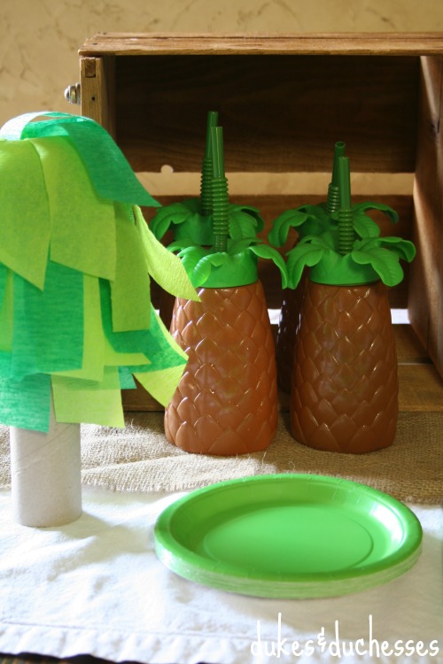 …. and palm tree cups filled with jungle juice {which was really just ice water}.