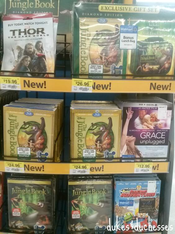 On a recent trip to Walmart, I picked up the newly released Diamond Edition of The Jungle Book. Right now, the Diamond Edition is available exclusively at Walmart and includes a themed lunch box {there’s been a lot of negotiating with my younger kids over who should get it!}.