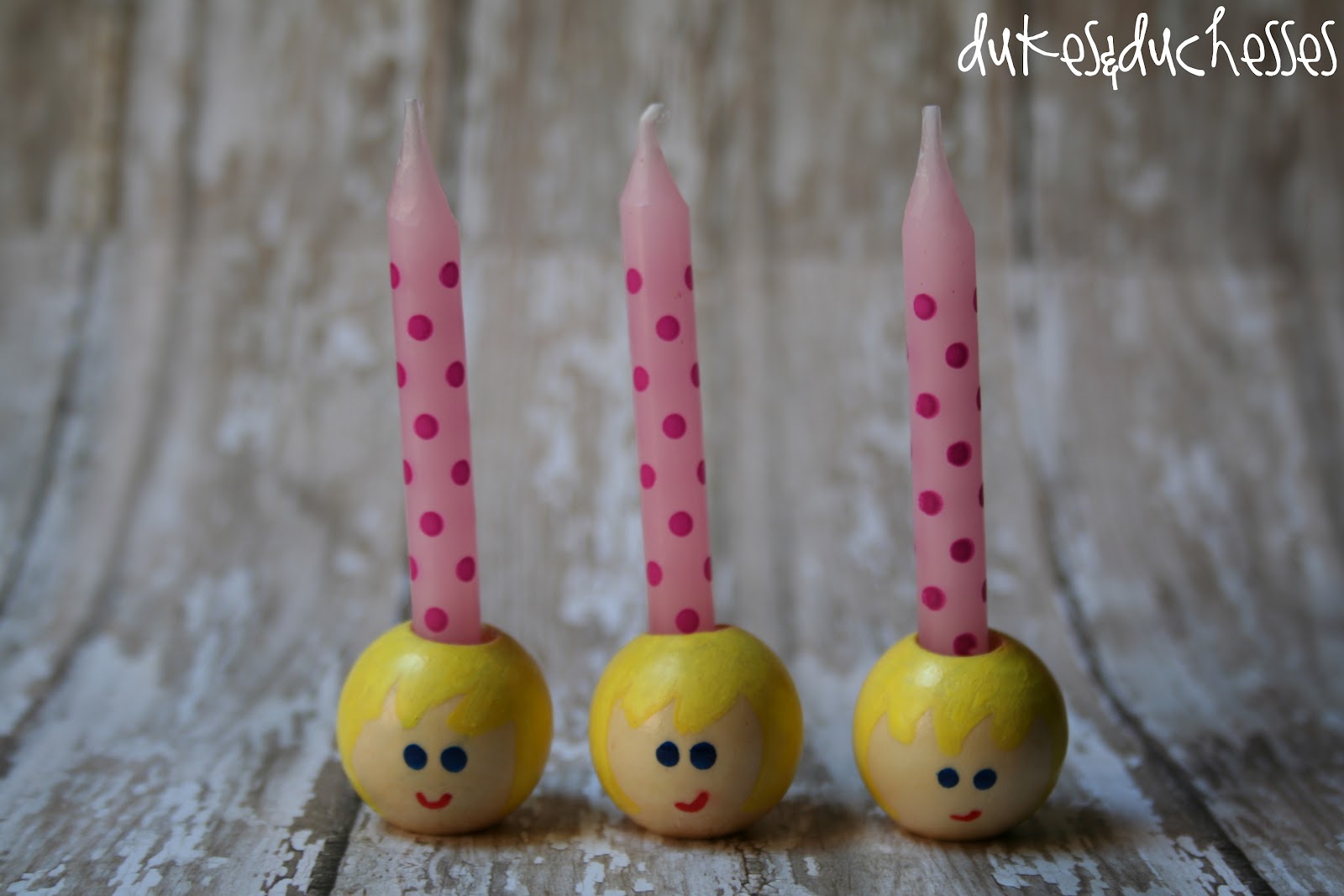 I’m in full party mode around here, preparing for Tate’s dolly party in a few weeks.  Last week I shared Tate’s little birthday dress and today I’m sharing the cutest little candleholders.