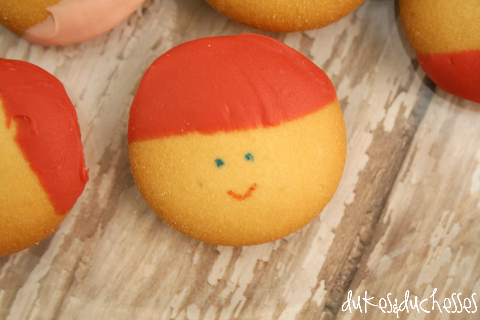 These little doll face vanilla wafers will be served at Tate’s dolly shindig on Sunday {inspiration found here}. I pinned them a year ago, thinking they’d be so adorable for a little girly tea party and then fell in love with them all over again when I started planning the doll party.