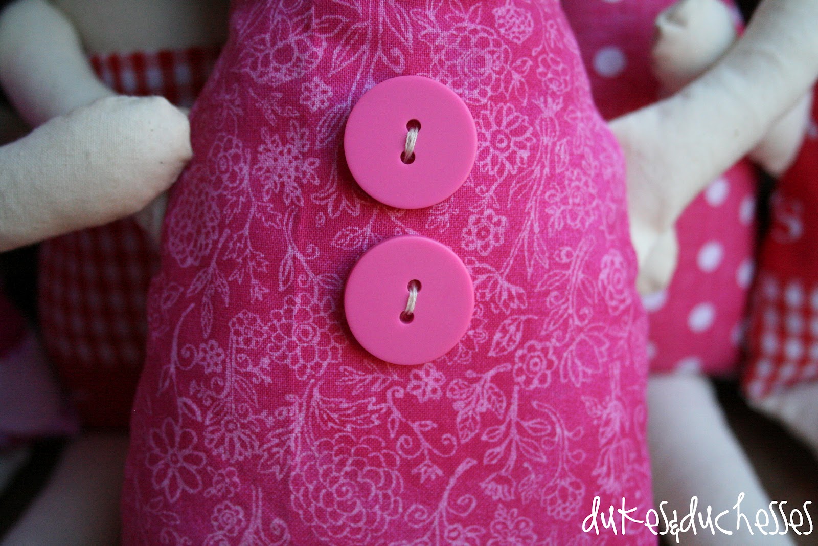Some dolls got coordinating buttons sewn on the front of their fabric dresses …