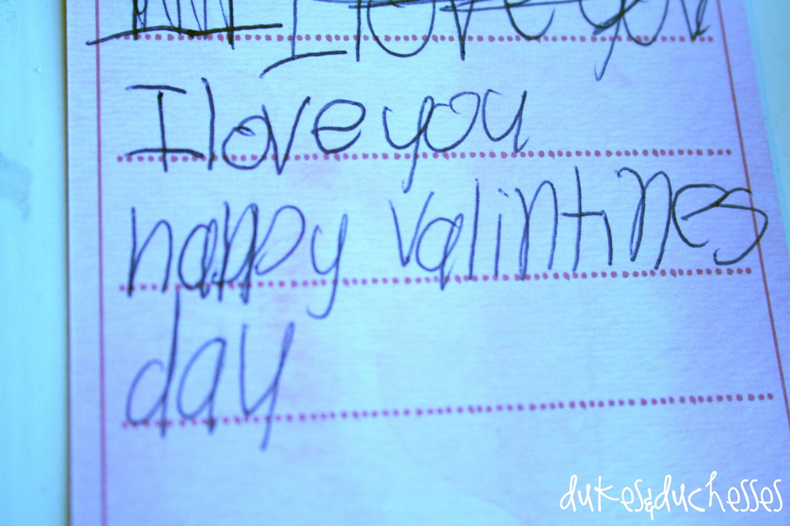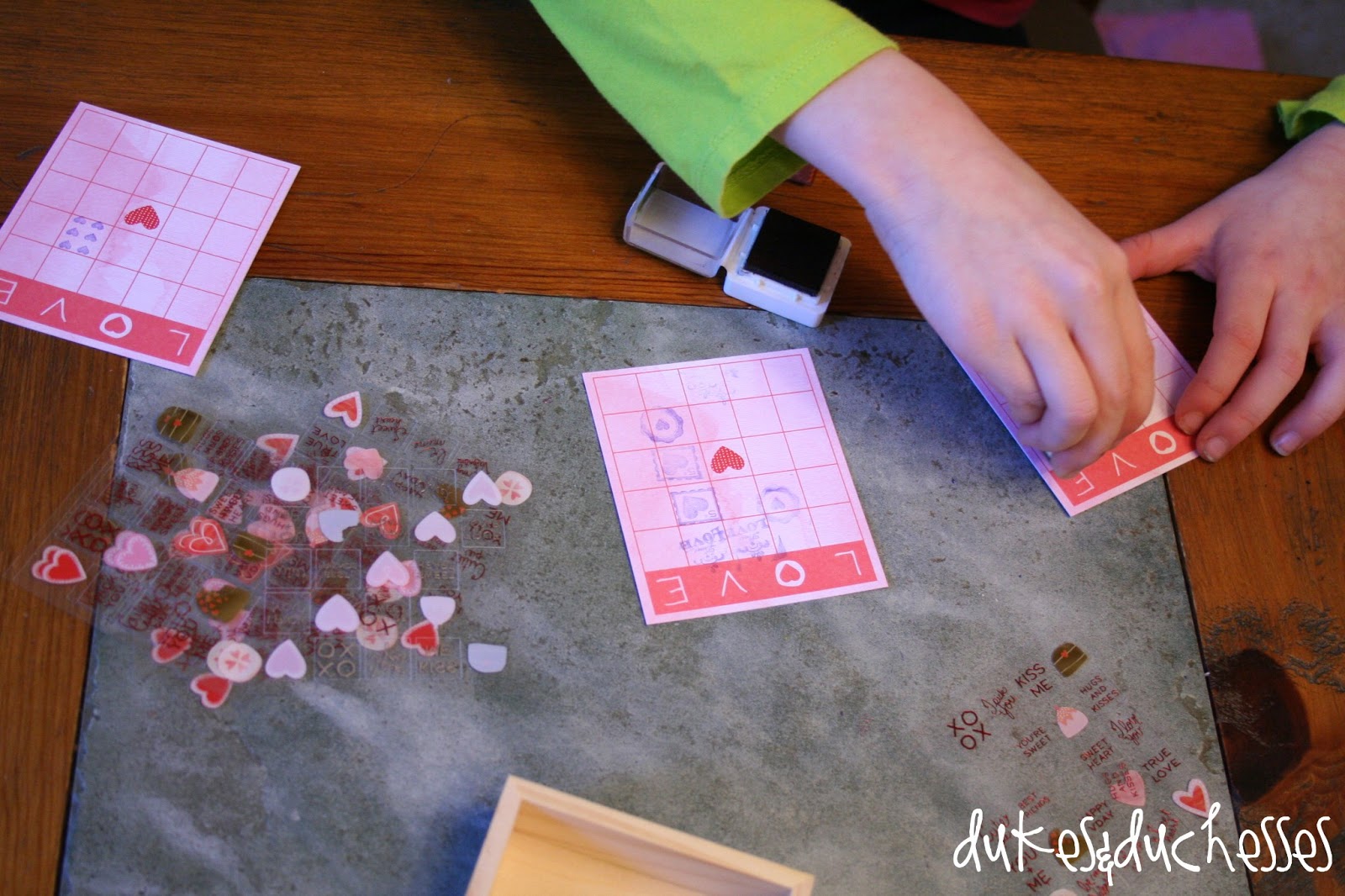 Don’t these little cards remind you of Bingo cards? Kennedy even added a fun message on the back of hers: “Bingo! You’re my Valentine!” {We love cheesy Valentine messages.}