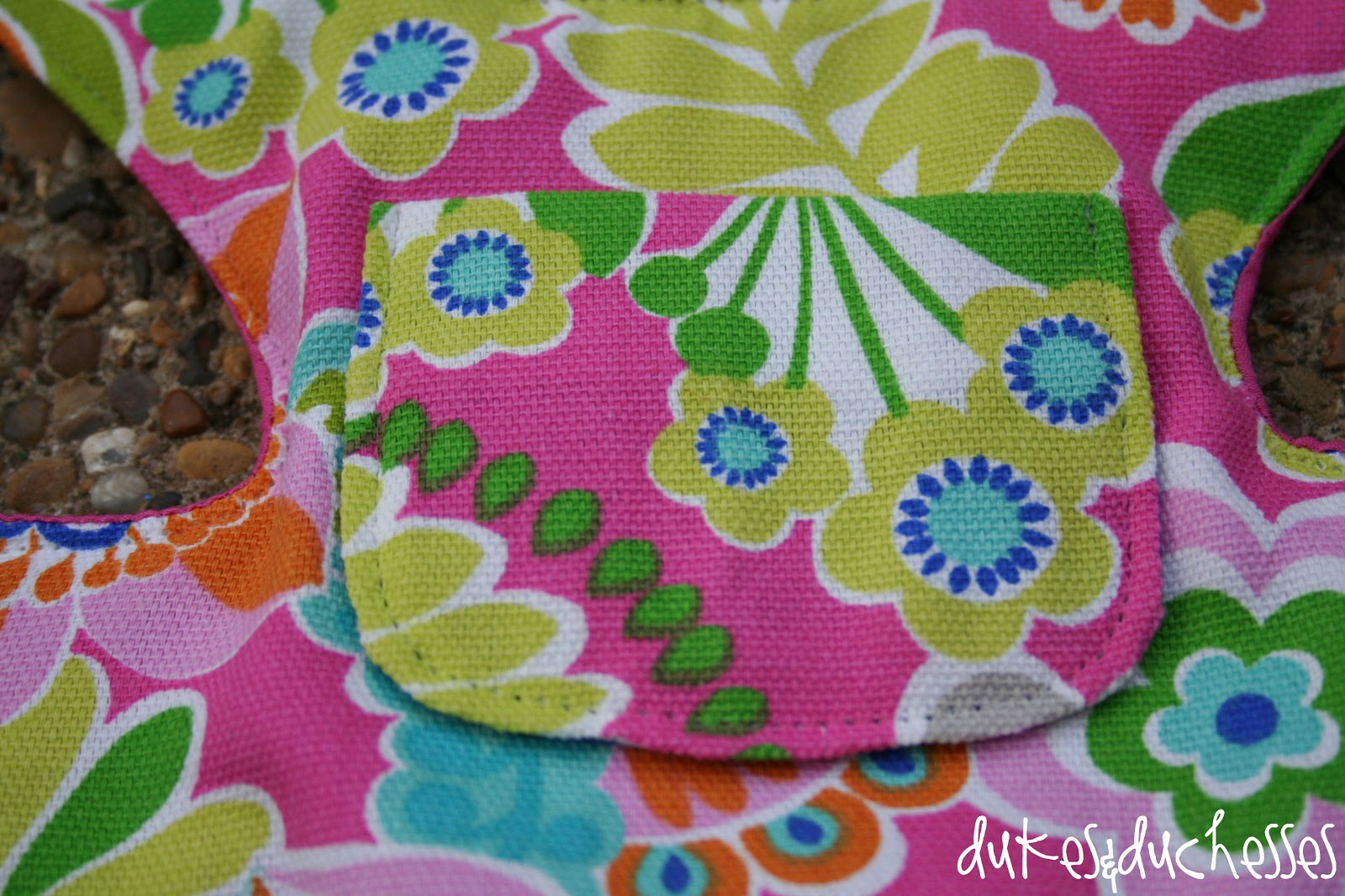 I used a bright fabric for the front {bought at Hobby Lobby} and paired it with coordinating fabric from the stash for the straps …