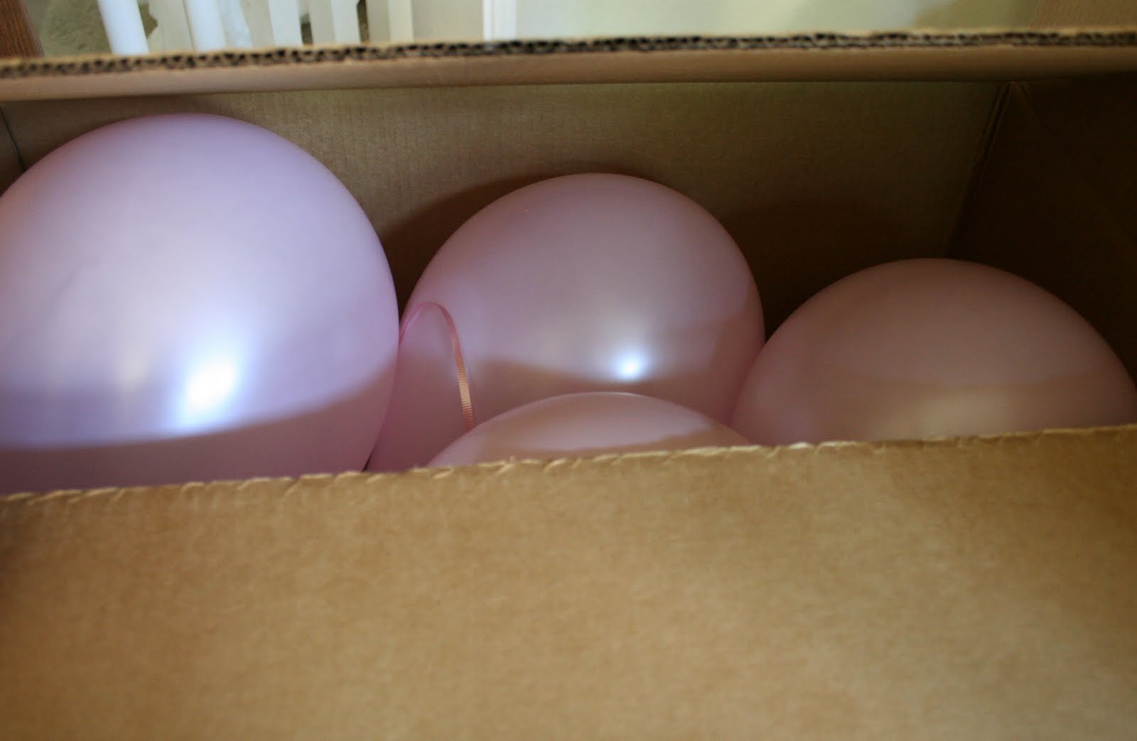 A pile of pink helium balloons were placed inside a big box, wrapped up, and opened at the party.