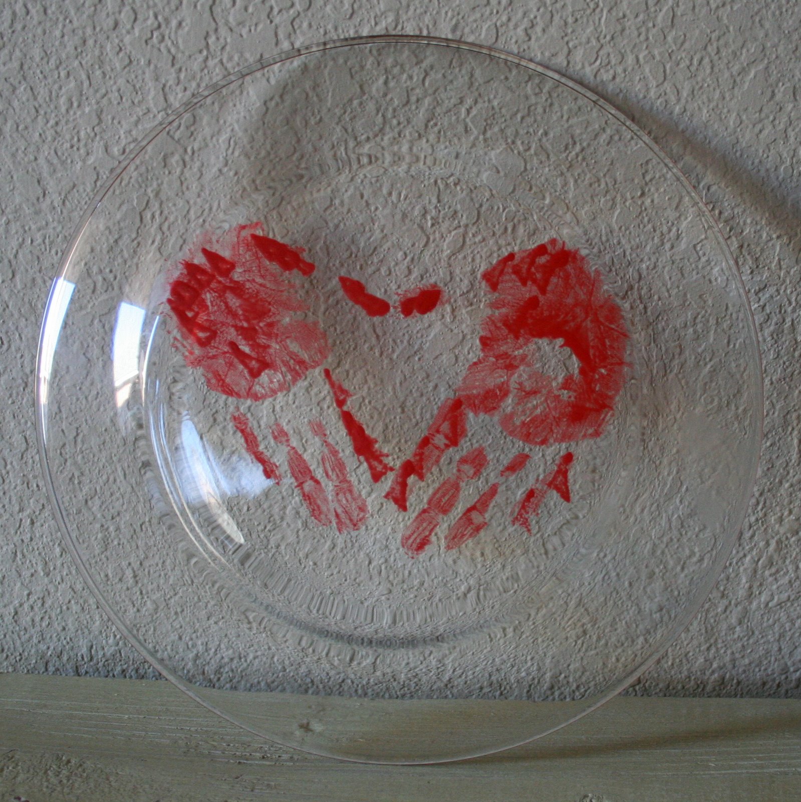 … and then we made a little craft. The moms painted the kids’ hands and we pressed them onto the back of clear plates to make hearts. Easier said than done. I may have shown a bit of impatience during this part of the party. {We pressed the handprints onto the back of the plates so the front will remain food safe … we just used simple acrylic paint for the handprints.}