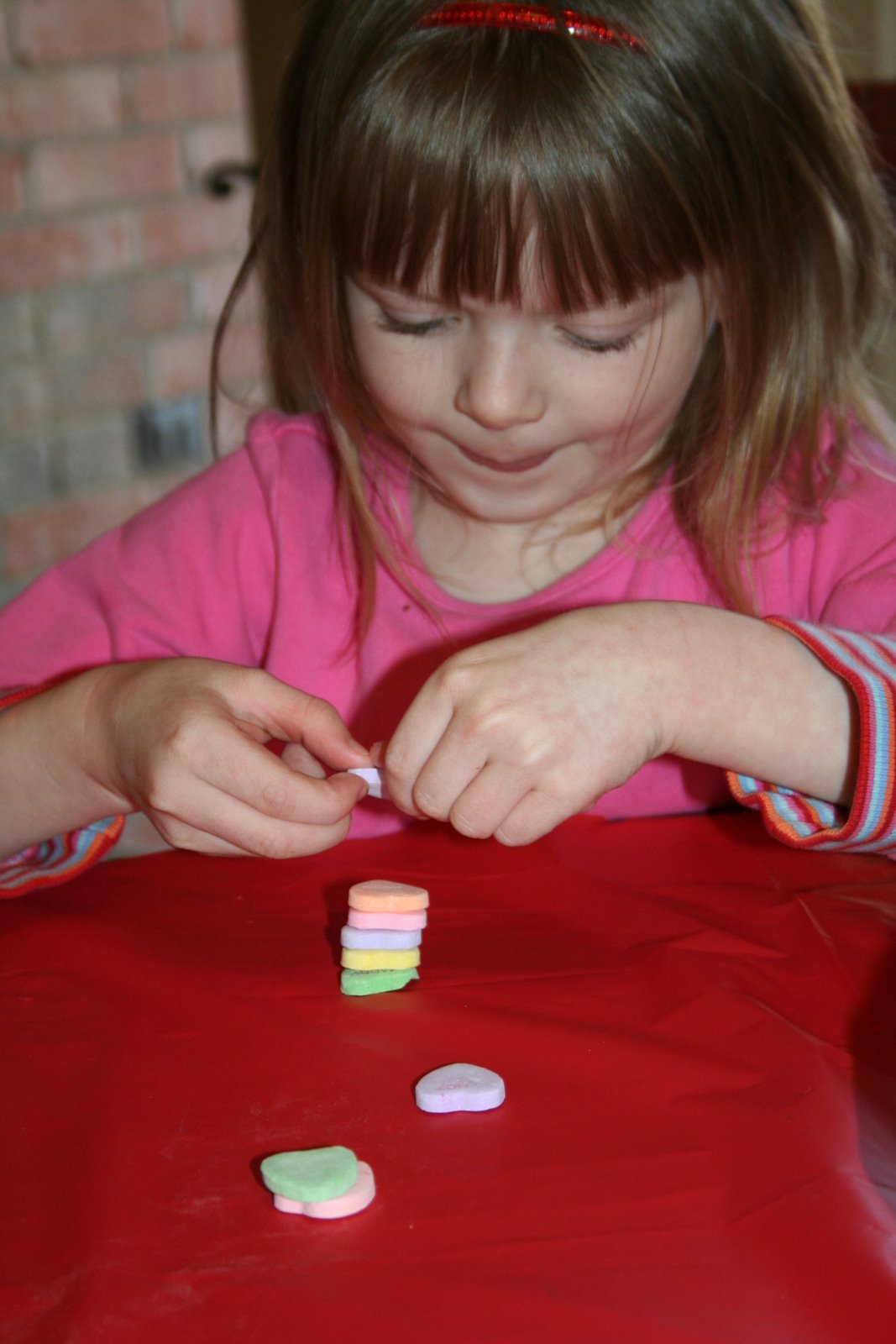 Borrowing from the great ideas at One Charming Party, the kids played Tower of Love {stacking conversation hearts as high as they could} …