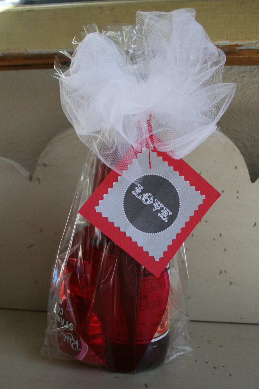 The valentine exchange was a highlight, and I even got a valentine from my friend, Cheryl. How cute is this? Pomegranate soda and a chocolate heart all packaged up with a tulle bow.