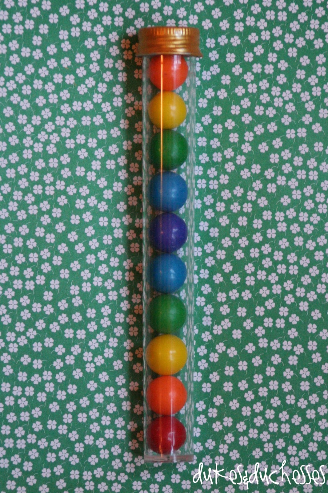 After filling the tubes with rainbow colored gumballs, I had a sweet little treat for my kiddos.