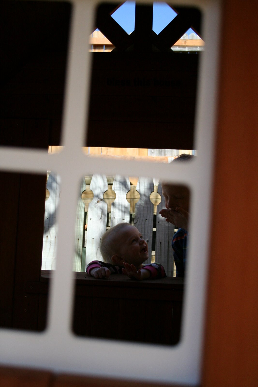 While I was embellishing, Luke and Tate were peeking through the windows and laughing with each other. I had to take a few photos of all the cuteness.
