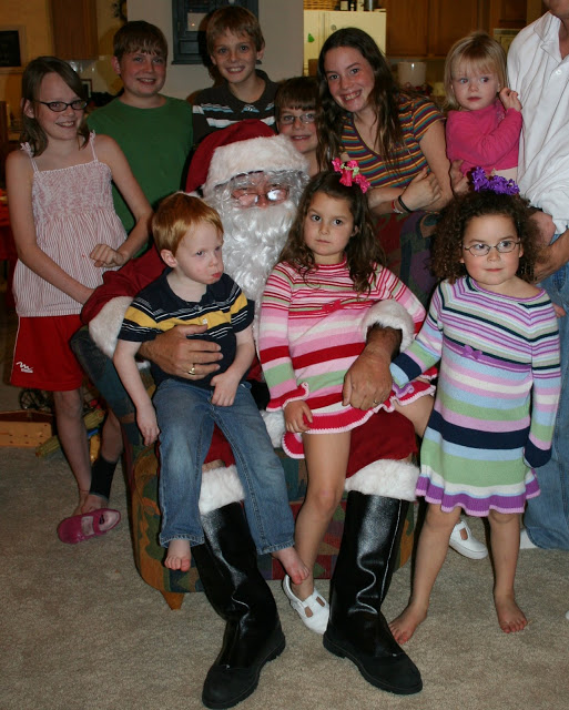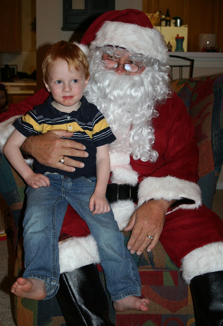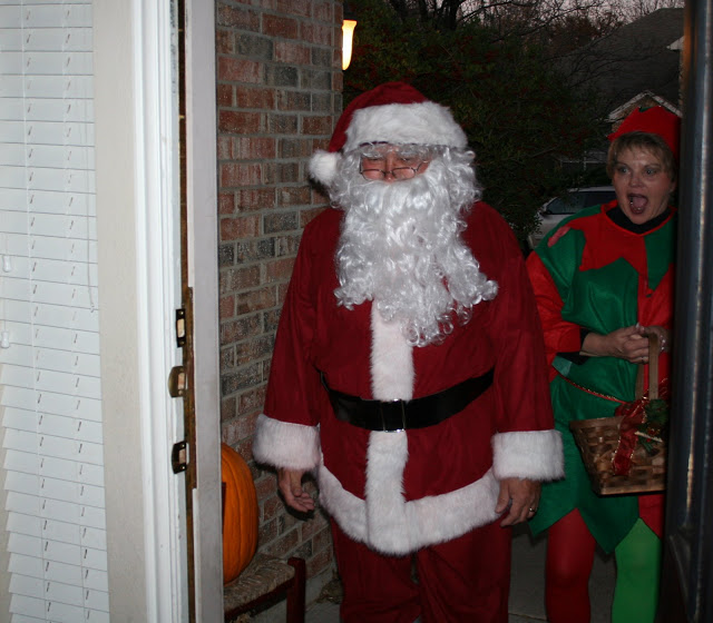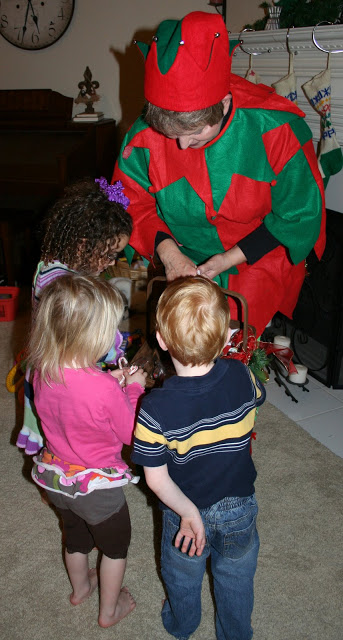The doorbell rang during dinner. And who should appear? Santa and his friendly Elf! The kids were surprised and calmly excited.