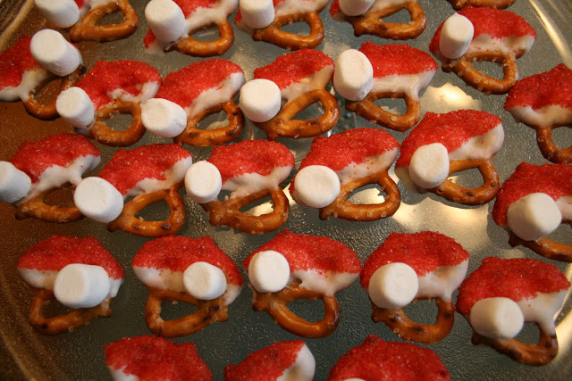 The kids snacked on little pretzel Santa hats {inspiration found here}. They were so simple to make and the kids loved them.
