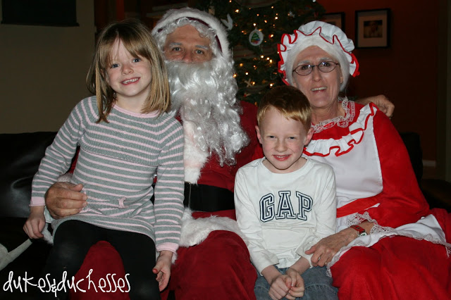 The little ones thought they were just having a fun, Christmas-y bedtime treat but the doorbell rang and Santa and Mrs. Claus arrived for a little visit.