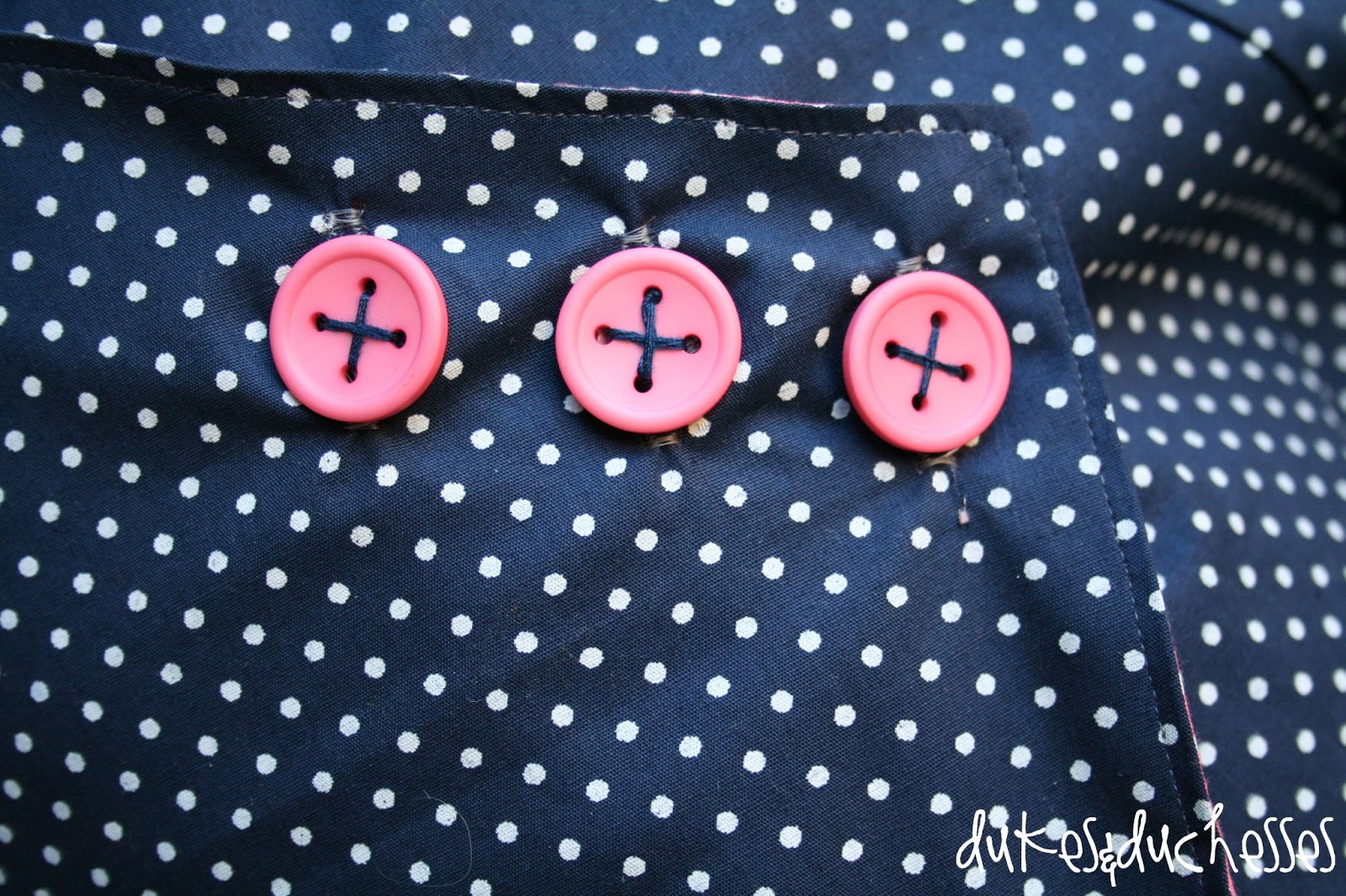 Great job! I love the pink pockets and buttons!