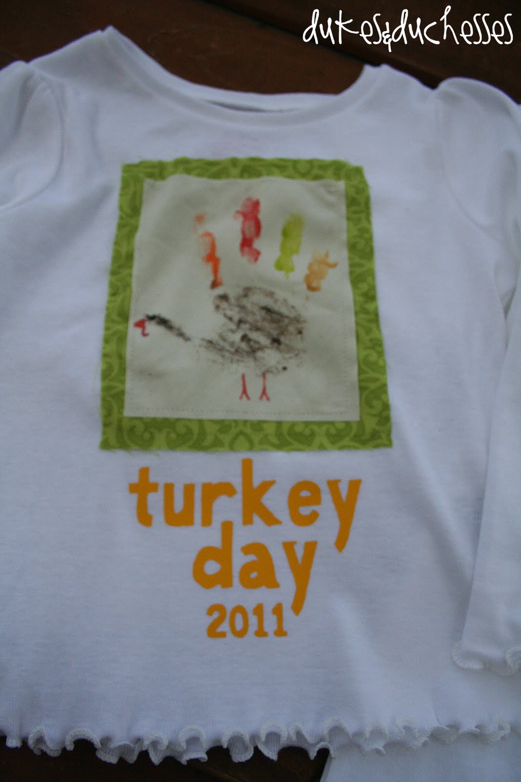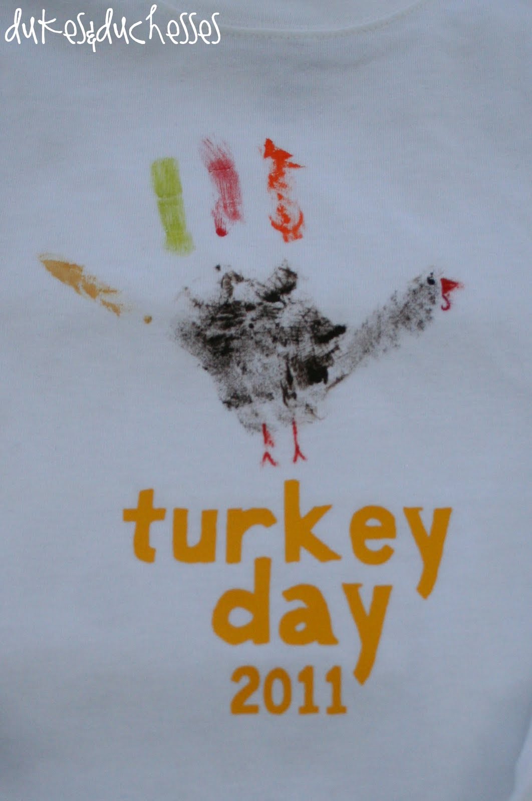 Luke somehow lost his muslin turkey {how does a muslin turkey disappear from sight?} so we re-stamped his handprint right onto a shirt … it seemed a bit more boy-ish without the fabric backing.