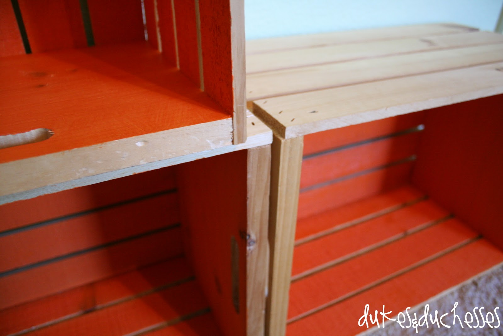Luke’s crate shelves got an IKEA-inspired paint job that took them from plain to awesome.