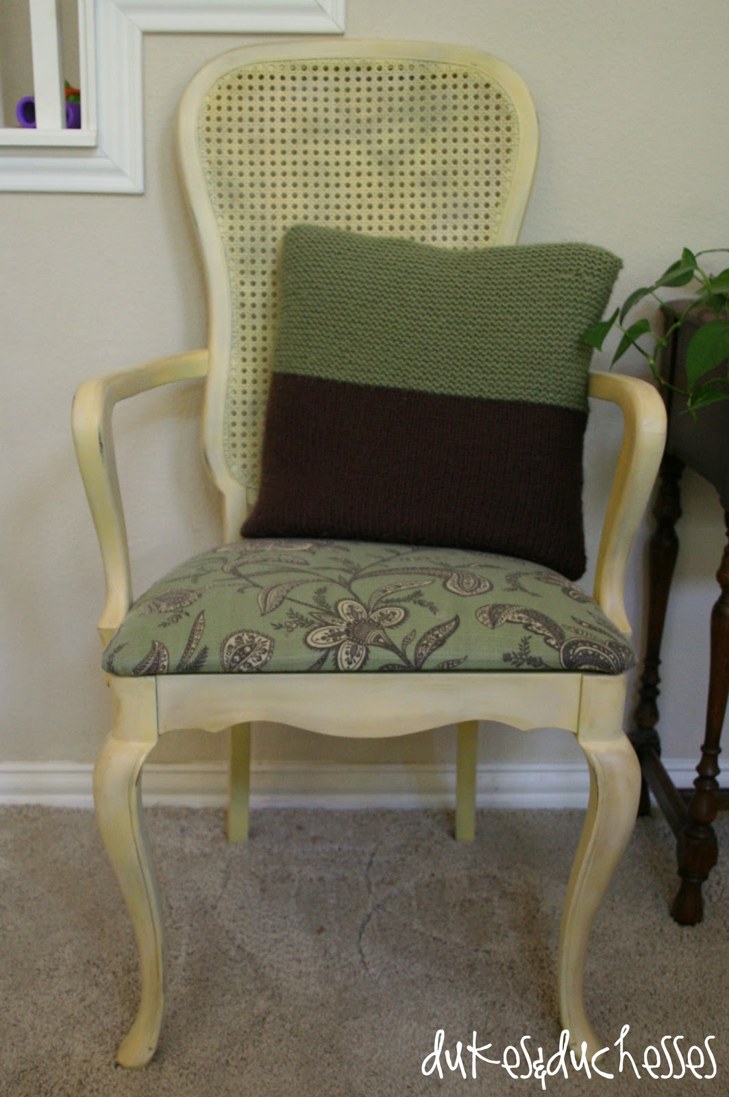 A cane-backed chair got a simple yellow paint job and an instant update. It’s amazing what some paint can do.