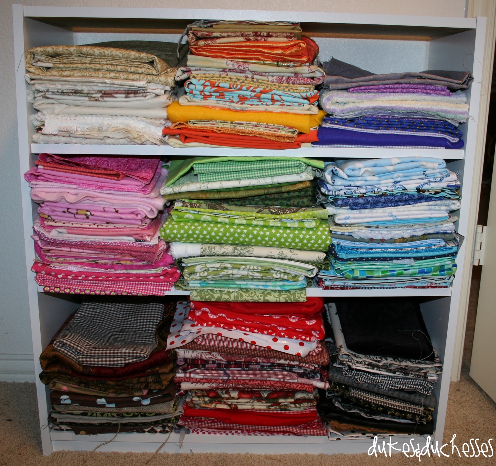 In January, I overhauled my fabric stash. I got rid of everything I won’t use and color coordinated everything I chose to keep then stacked it on a cheap new shelving unit. Almost a year later, I’m still loving this. It’s so easy to find the fabric I want and I’m able to use my stash because I always know what’s there.