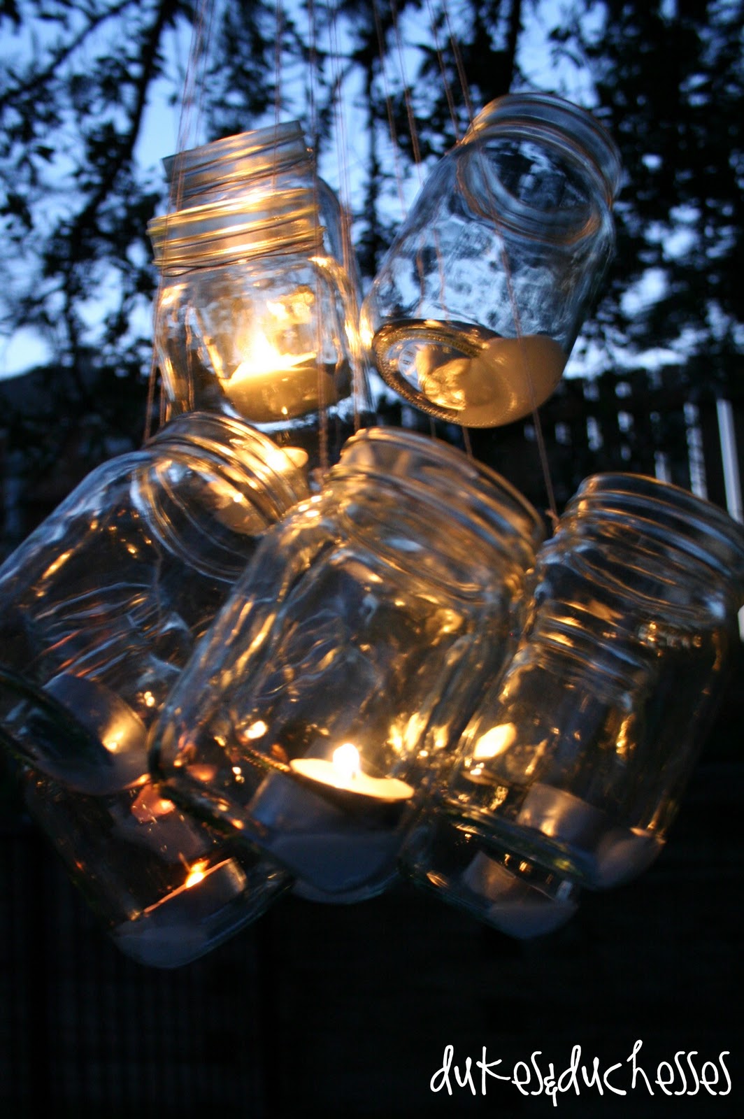 Phil and I celebrated our anniversary with romantic backyard dining under a mason jar chandelier. Instant mood setter.
