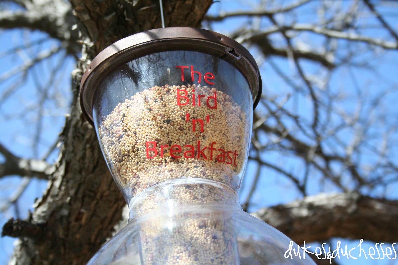And it wouldn’t be me if I didn’t add a little vinyl love to the feeder. The Bird ‘n’ Breakfast. Cheesy, huh? But kind of catchy too, don’t you think?