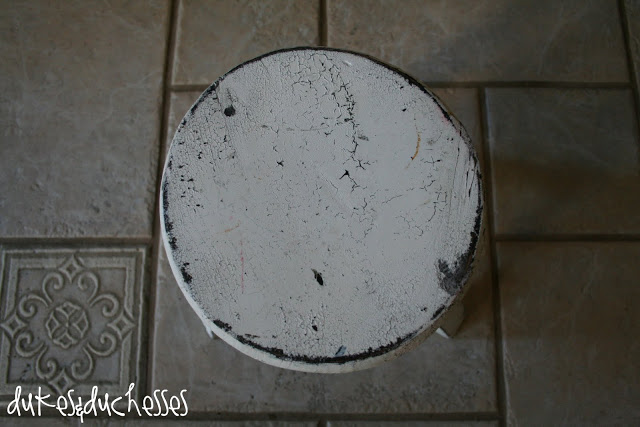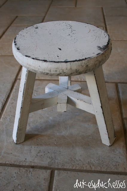 While junking at First Monday Trade Days in Canton last weekend, I found a sweet little distressed stool. It’s very plain but the distressing adds a great touch.