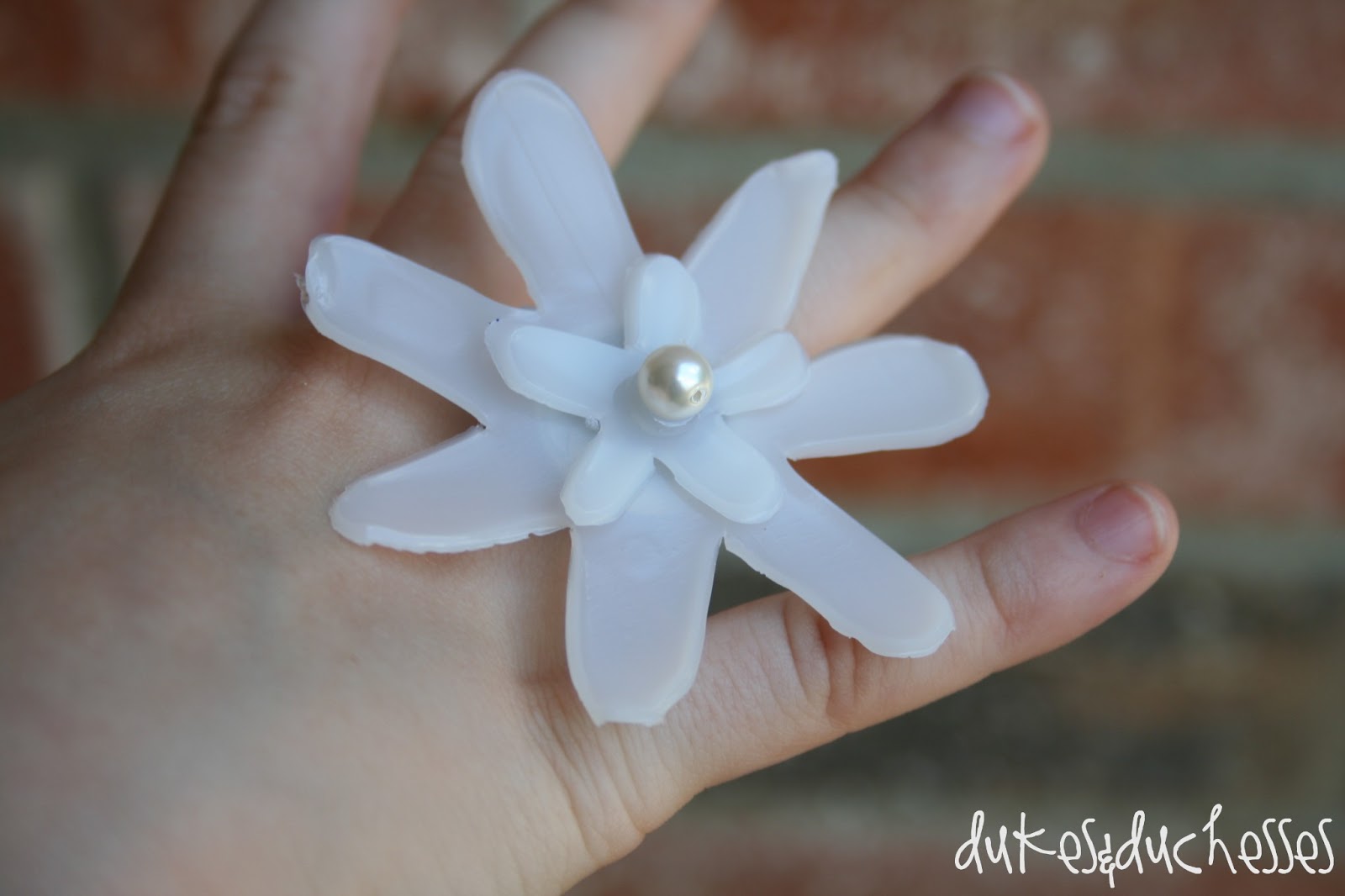 Since I drink a lot of coffee creamer, a lot of empty bottles hit our recycling box every month. I decided to do some crafting with my little girls and upcycle some of those bottles into some fun and fancy flower rings!