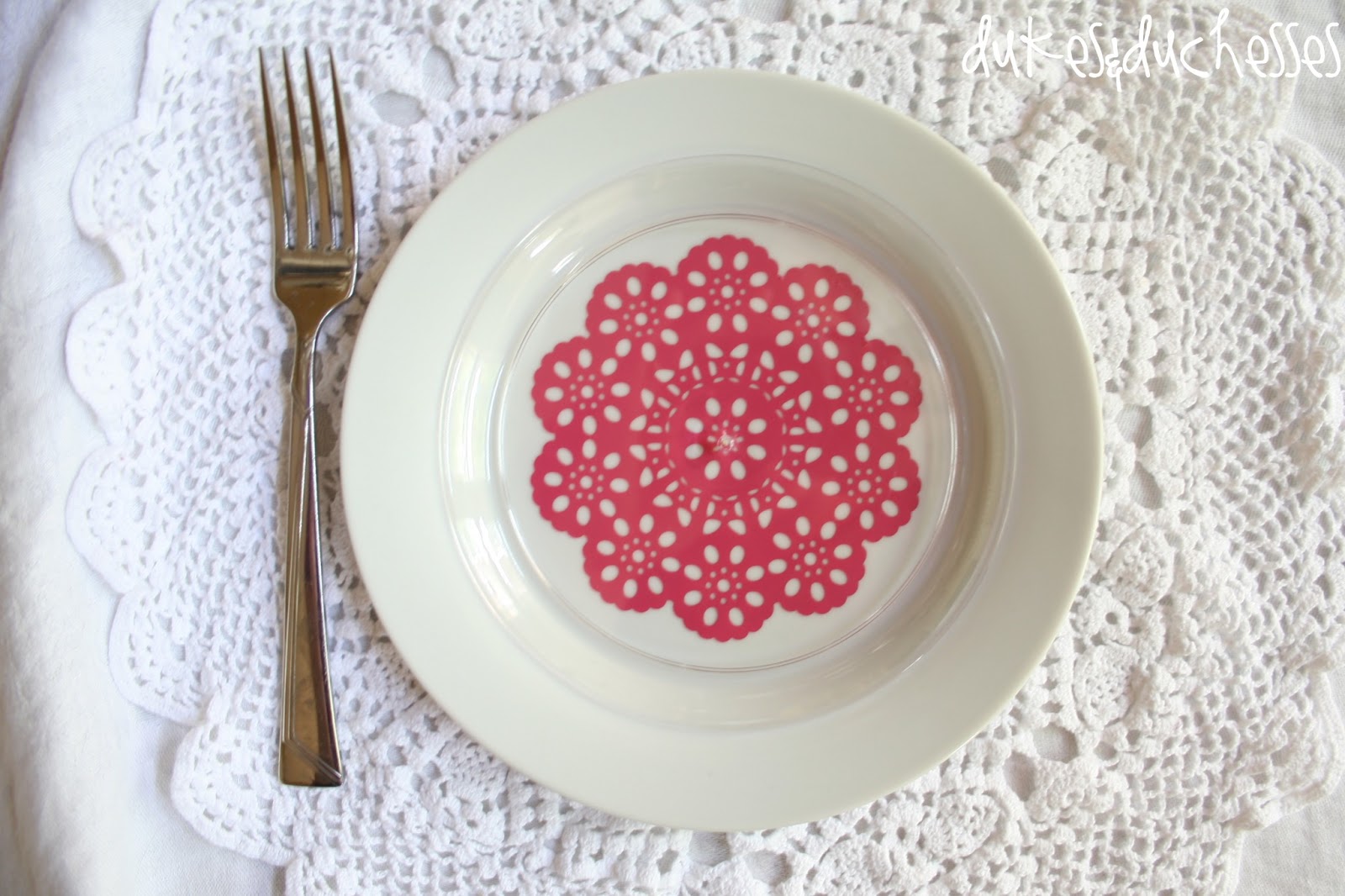 I am a doily addict Randi! Great project. I love that you can us this plate for so many different celebrations. Your Mom will love this! xo