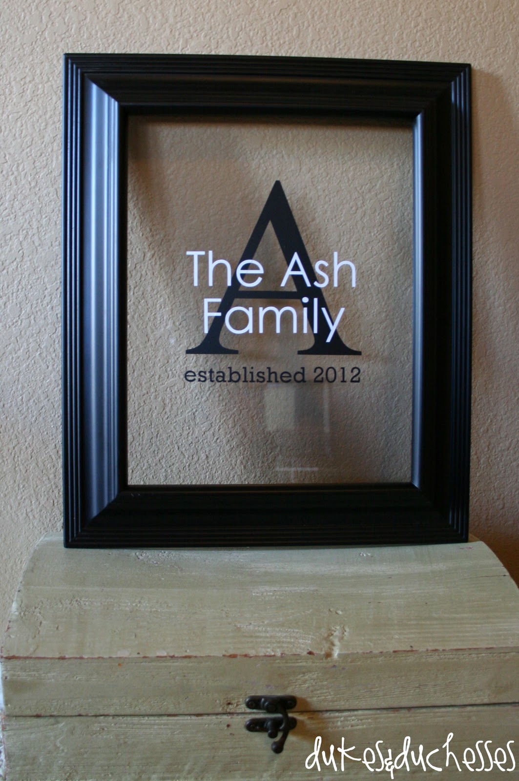 I used three different fonts and two colors of vinyl {black and white} and kept it simple so it will fit any decor.