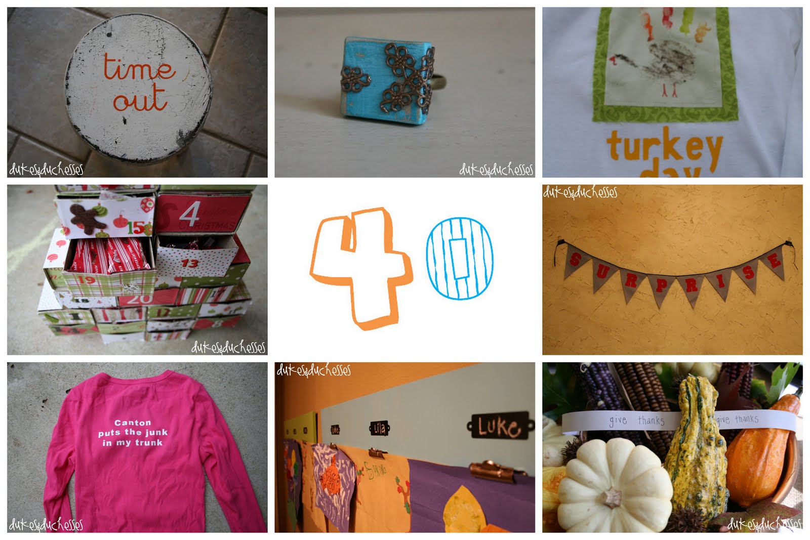 In November, I embellished a time out stool {and used it a lot}, wrote a tile ring tutorial, made shirts for the kiddos to wear on Thanksgiving, shared our 24 Days of Service calendar {it started this morning!}, shared forty facts in honor of my fortieth birthday, surprised Eli with a hot tub birthday party, spent a night thrifting in Canton, hung an art display for Luke and Lila’s kindergarten work, and hosted a blessed Thanksgiving.